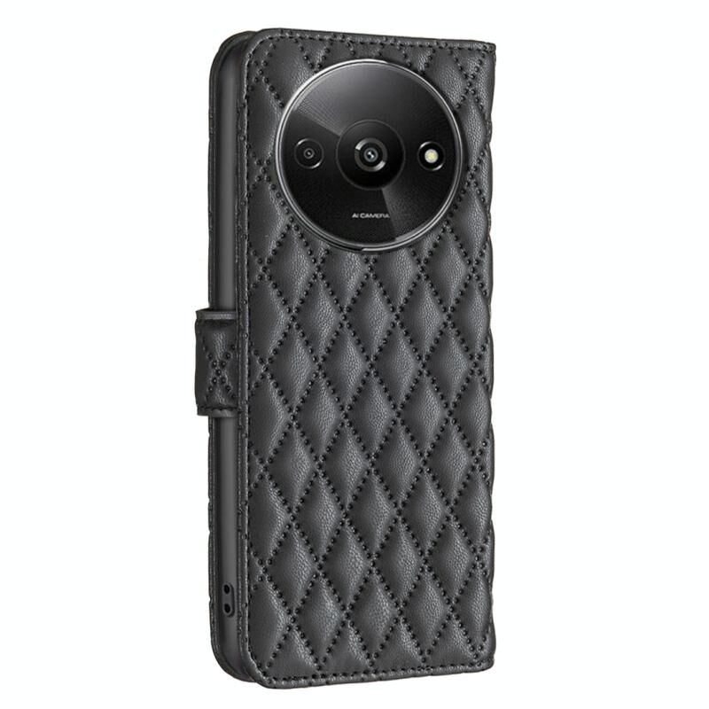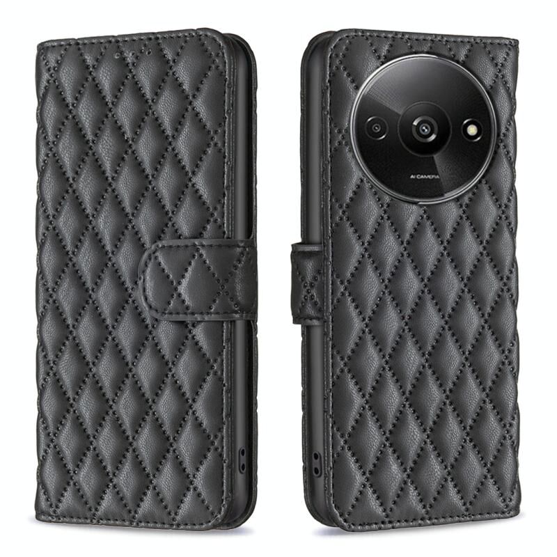 Για Xiaomi Redmi A3 Diamond Lattice πορτοφόλι δέρμα Flip τηλέφωνο υπόθεση (μαύρο)