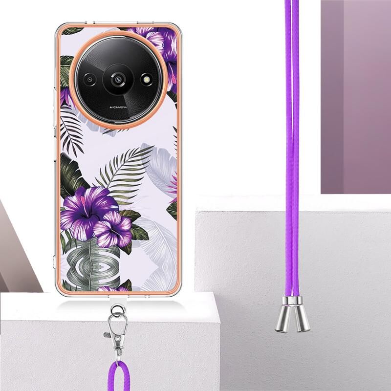 For Xiaomi Redmi A3 Electroplating IMD TPU Phone Case with Lanyard(Purple Flower)