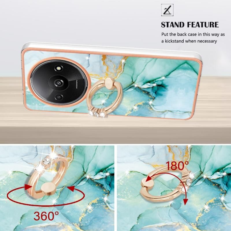 Θήκη κινητού τηλεφώνου Xiaomi Redmi A3 με Ηλεκτρολυτική Επικάλυψη, σχέδιο Μάρμαρου IMD, από TPU με Δακτύλιο Στήριξης (Πράσινο 003)