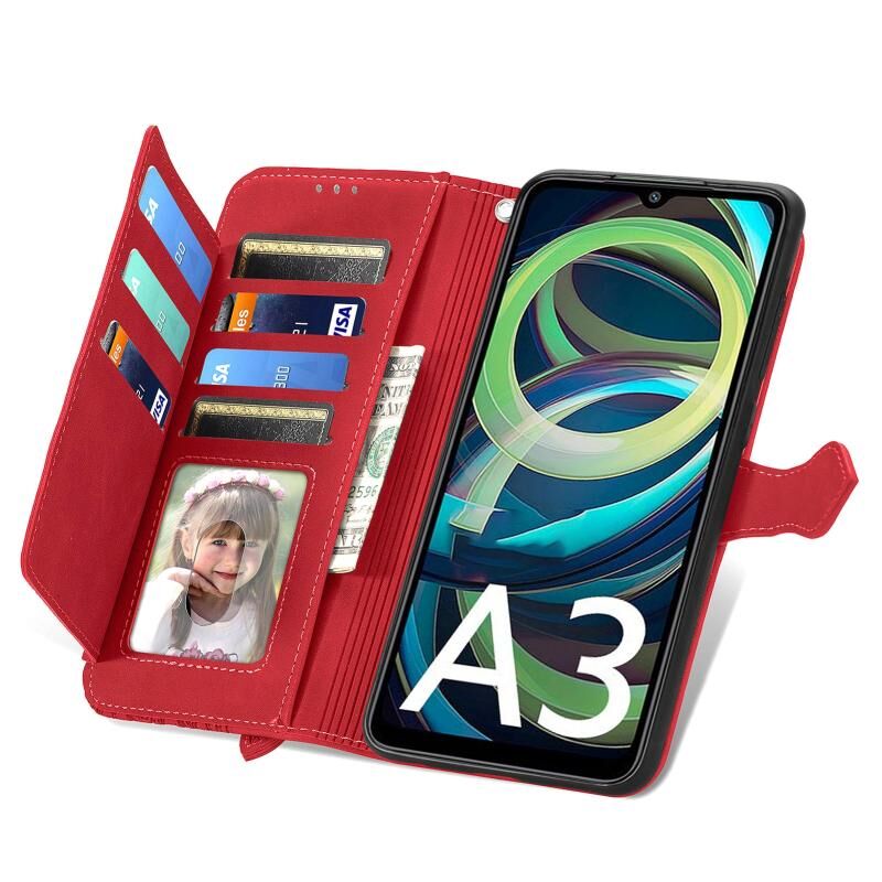 Για Xiaomi Redmi A3 ανάγλυφο λουλούδι φερμουάρ δερμάτινη θήκη τηλεφώνου (κόκκινο)