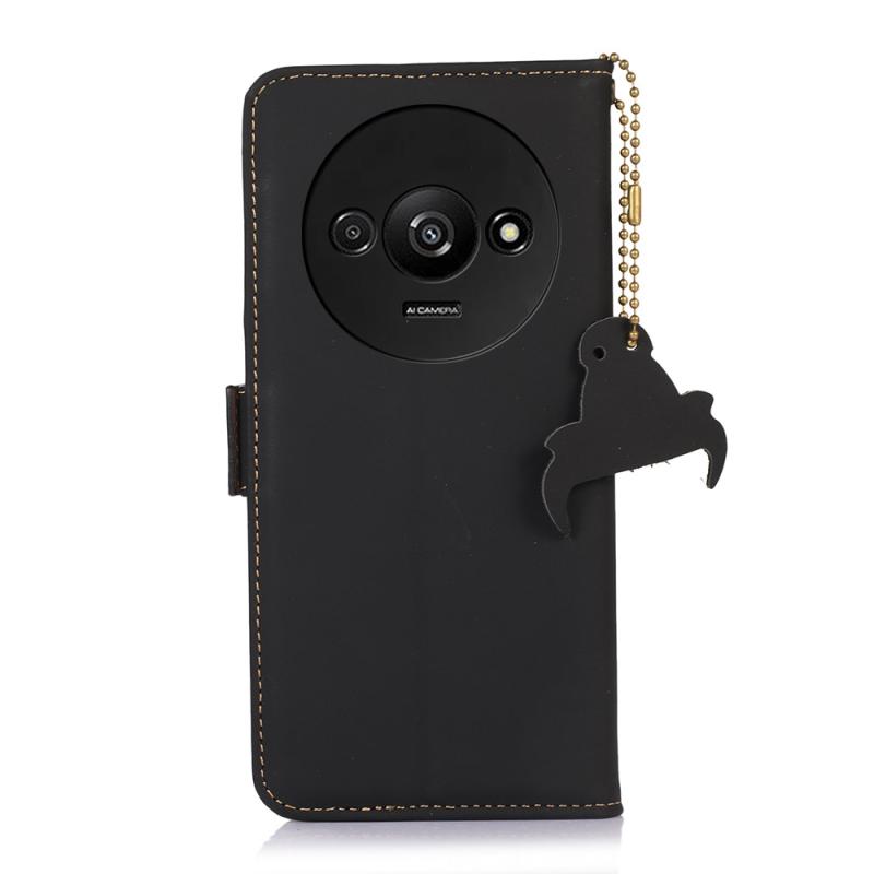 For Xiaomi Redmi A3 Genuine Leather Magnetic RFID Leather Phone Case(Black)