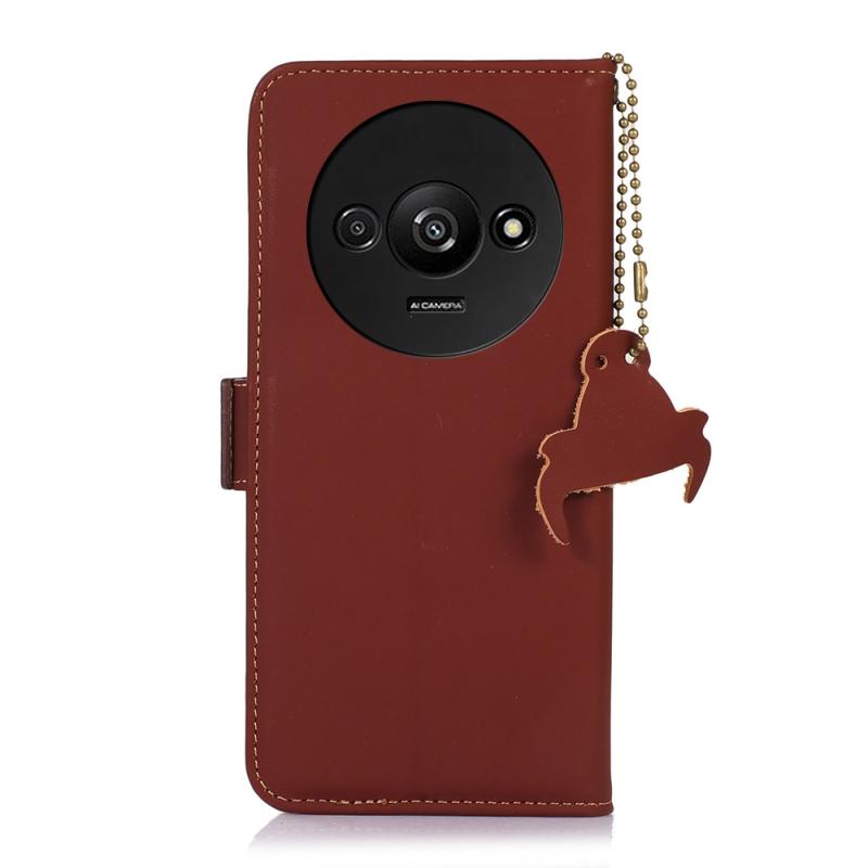 For Xiaomi Redmi A3 Genuine Leather Magnetic RFID Leather Phone Case(Coffee)
