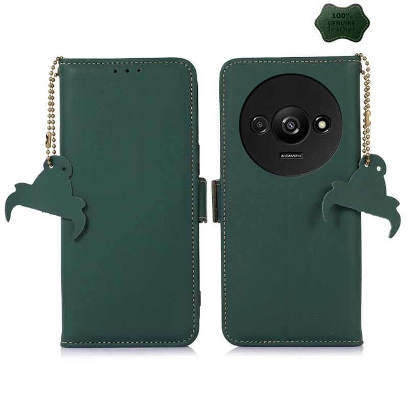 Θήκη τηλεφώνου από γνήσιο δέρμα με μαγνητικό κλείσιμο και προστασία RFID για Xiaomi Redmi A3 (πράσινο)