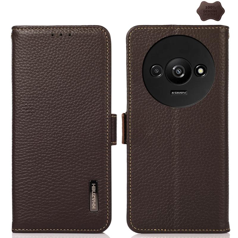 Για Xiaomi Redmi A3 KHAZNEH Δερμάτινη Θήκη με Μαγνητικό Κλείσιμο RFID (Καφέ)