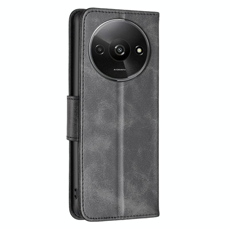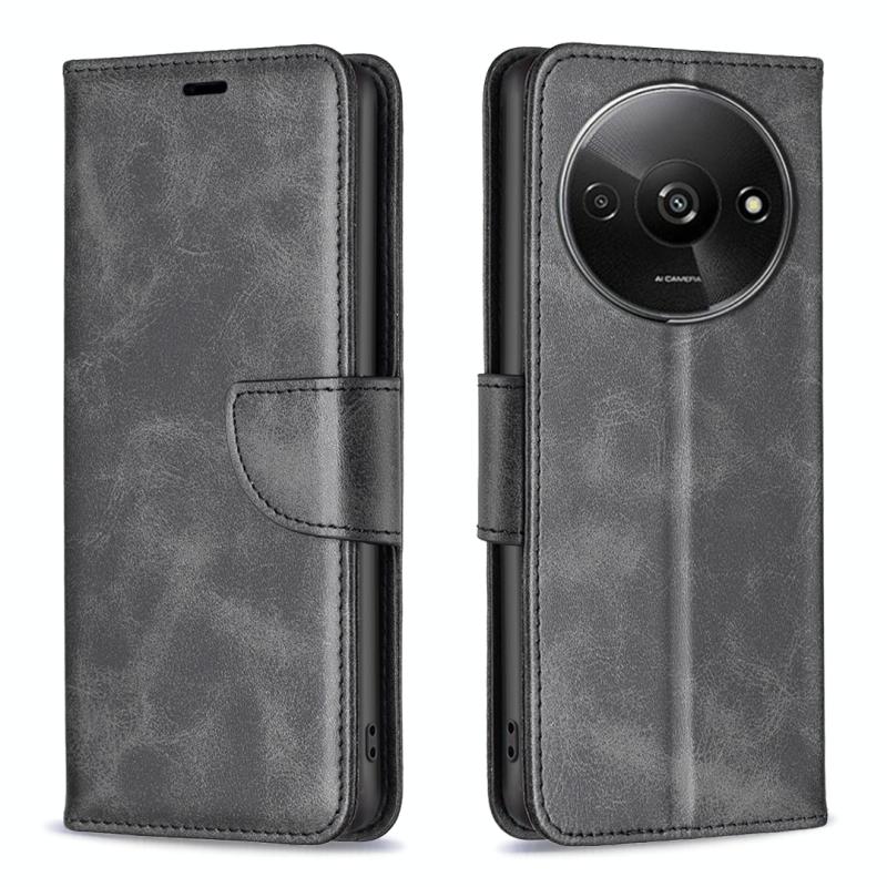 Θήκη τηλεφώνου δερμάτινη αναδιπλούμενη με καθαρό χρώμα και υφή δέρματος αρνιού για Xiaomi Redmi A3 (Μαύρο)