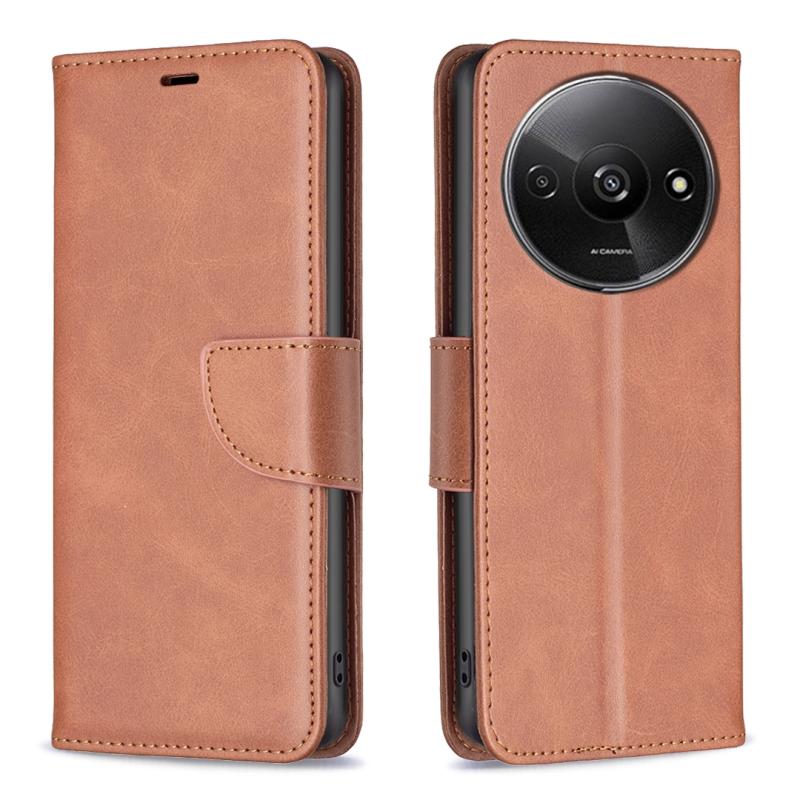 Θήκη τηλεφώνου δερμάτινη αναδιπλούμενη με καθαρό χρώμα και υφή δέρματος αρνιού για Xiaomi Redmi A3 (Καφέ)