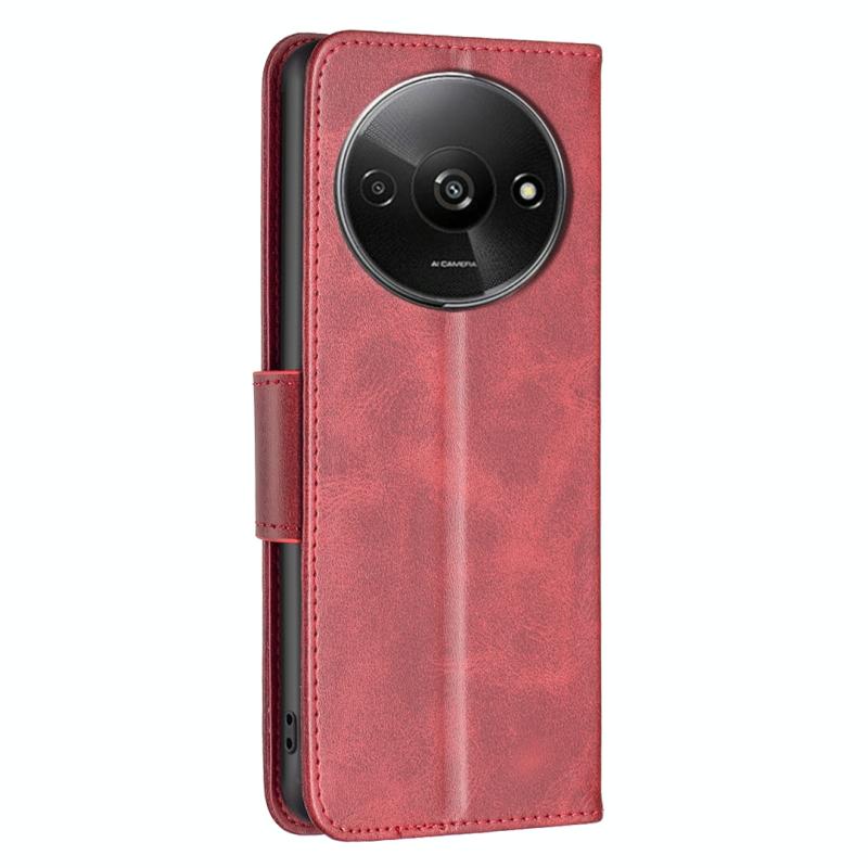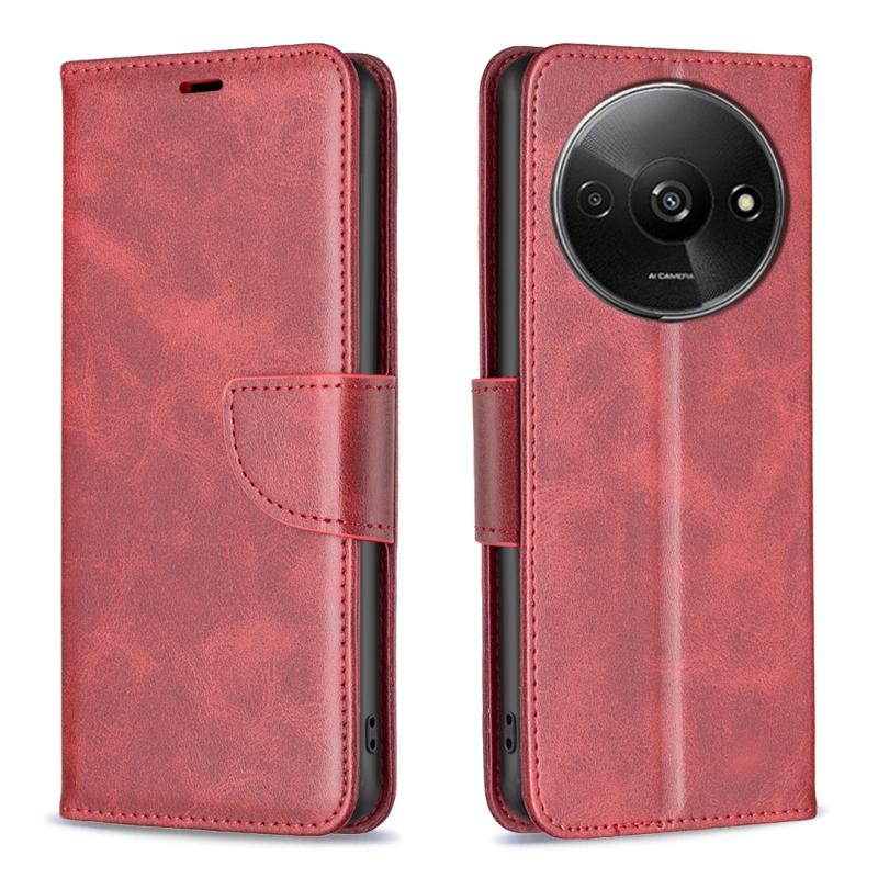 Θήκη τηλεφώνου δερμάτινη αναδιπλούμενη με καθαρό χρώμα και υφή δέρματος αρνιού για Xiaomi Redmi A3 (Κόκκινο)