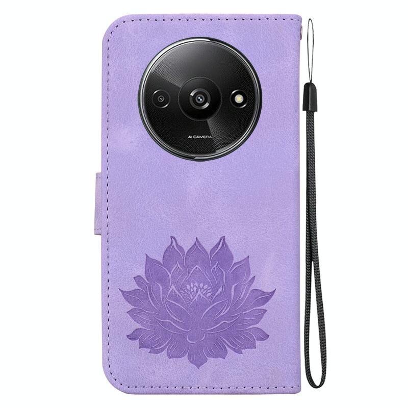 Για Xiaomi Redmi A3 Lotus ανάγλυφη δερμάτινη θήκη τηλεφώνου (μωβ)
