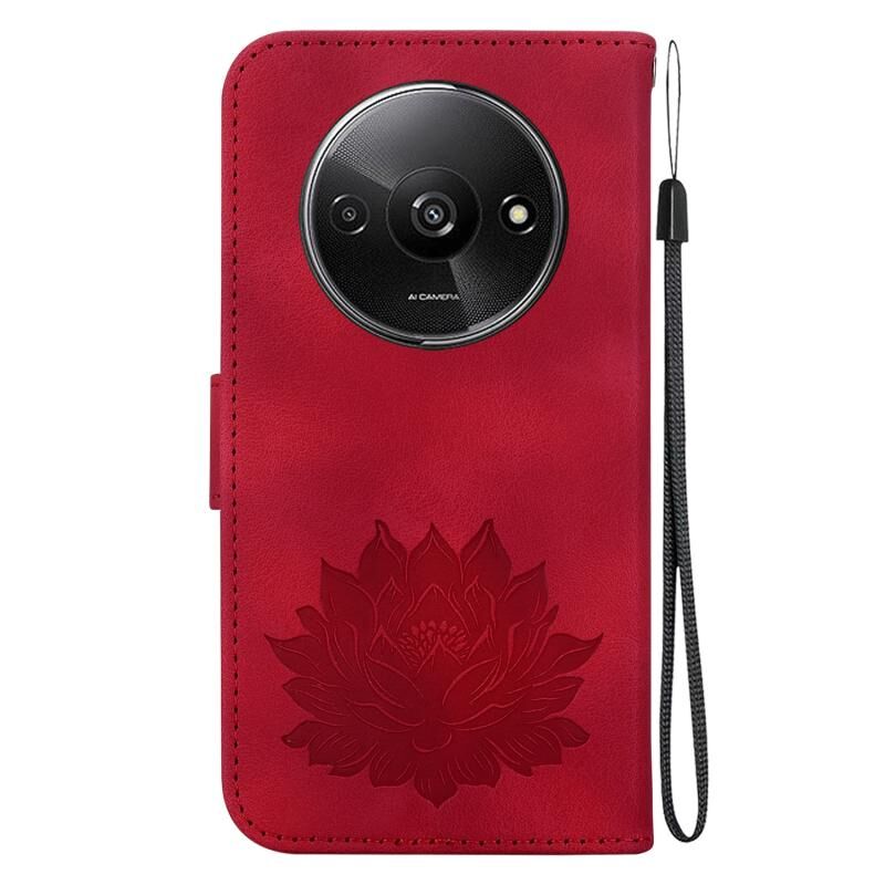 Για Xiaomi Redmi A3 Lotus ανάγλυφη δερμάτινη θήκη τηλεφώνου (κόκκινο)