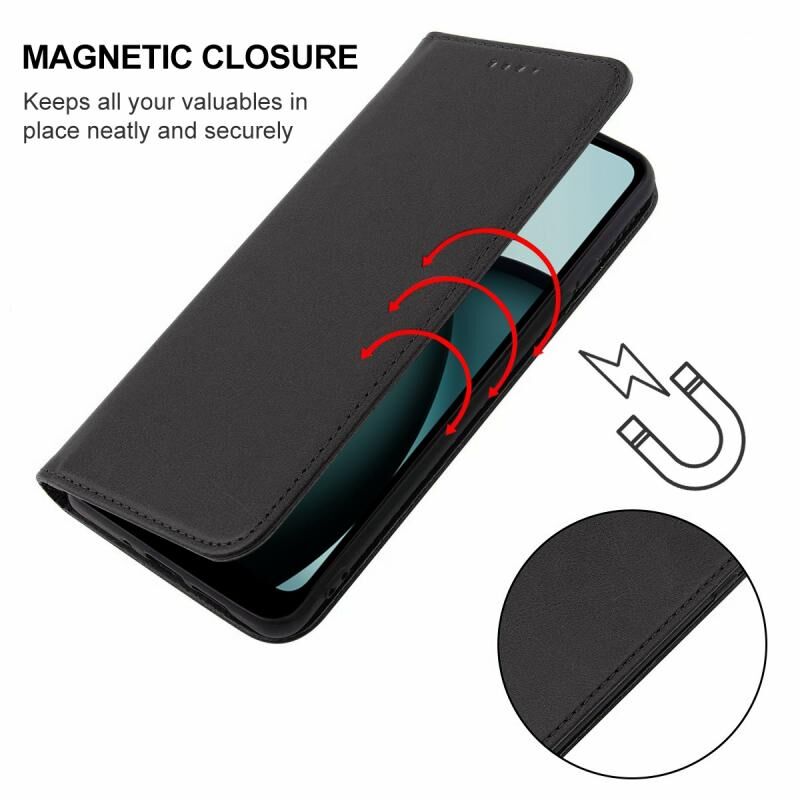 Για Xiaomi Redmi A3 Μαγνητικό κλείσιμο δερμάτινη θήκη τηλεφώνου (Μαύρο)