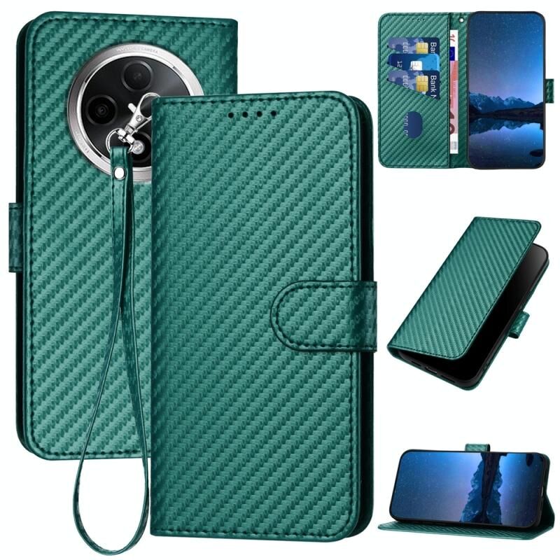 Για Xiaomi Redmi A3 Plus YX0070 Carbon Fiber πόρπη δερμάτινη θήκη τηλεφώνου με κορδόνι (σκούρο πράσινο)