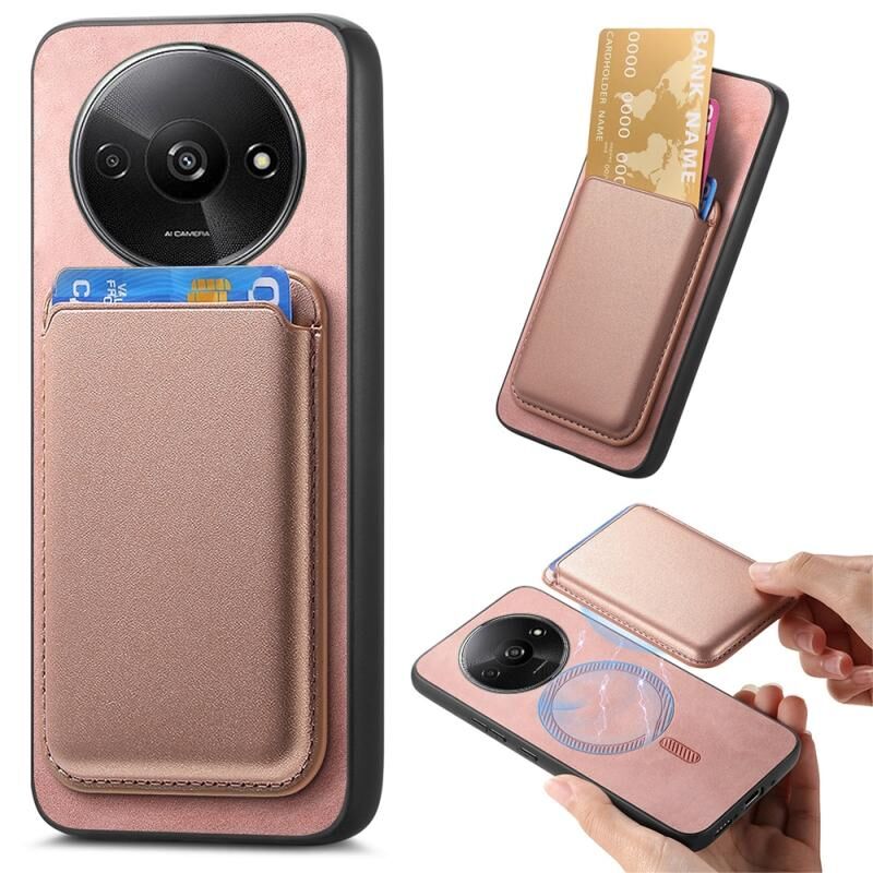 Θήκη κινητού τηλεφώνου για Xiaomi Redmi A3 Retro Magsafe με κάρτες, PU πίσω κάλυμμα (Κίτρινο)