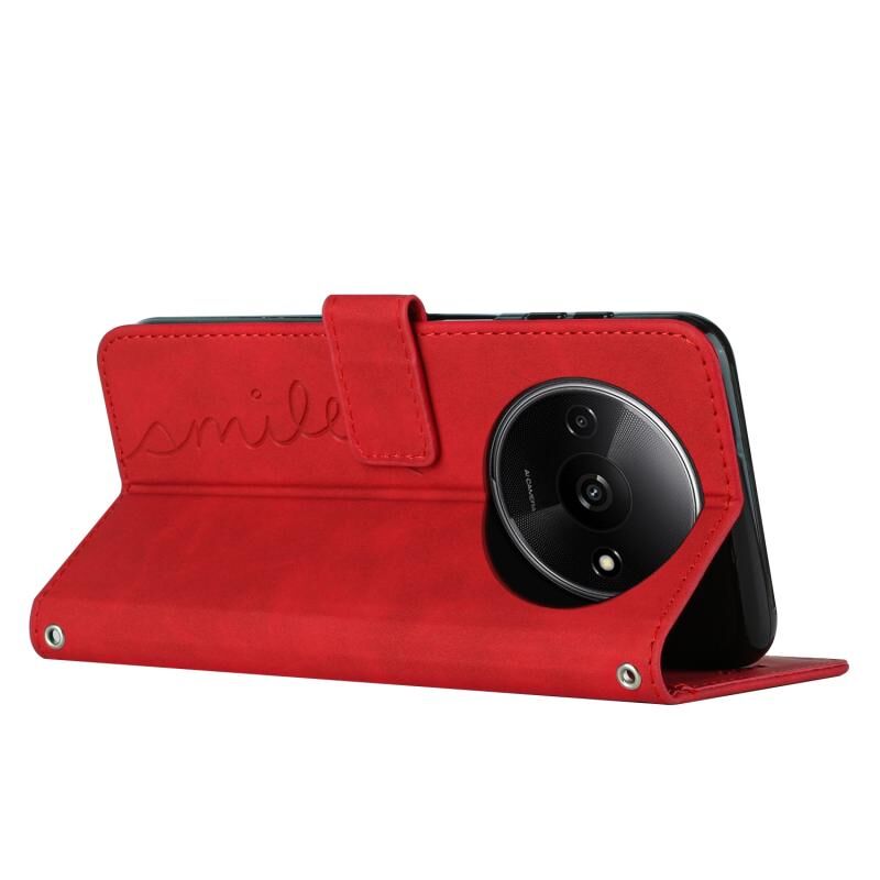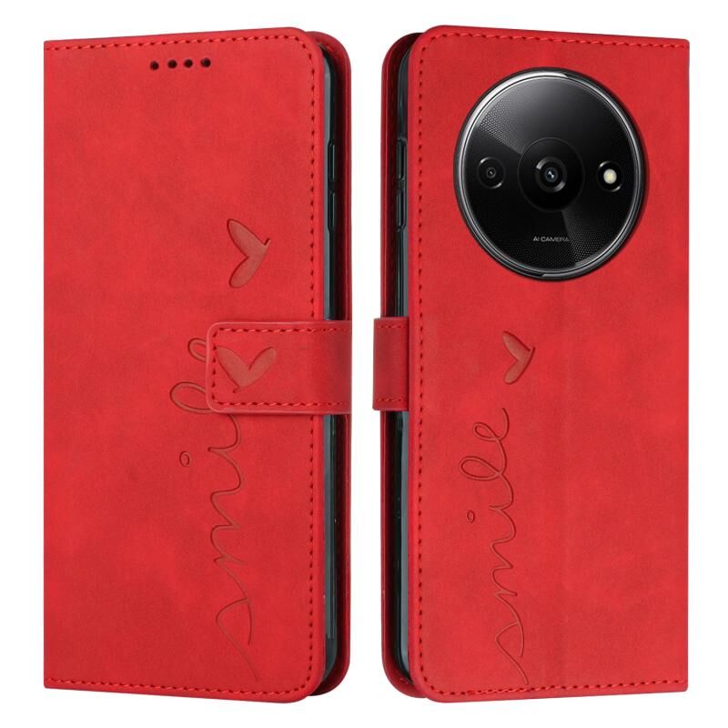 Θήκη τηλεφώνου από δέρμα με ανάγλυφο σχέδιο καρδιάς για Xiaomi Redmi A3 με αίσθηση δέρματος και μακρύ κορδόνι (Κόκκινο)