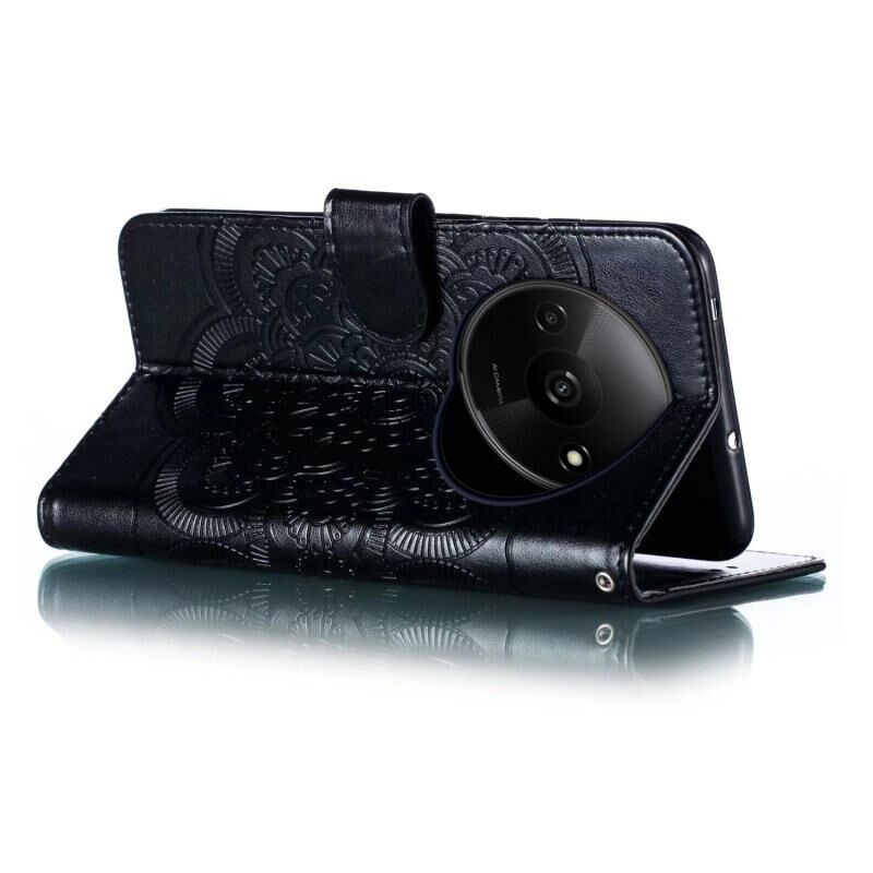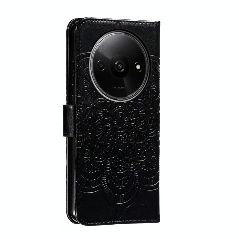Για Xiaomi Redmi A3 Sun Mandala ανάγλυφο μοτίβο τηλέφωνο δερμάτινη θήκη (μαύρο)