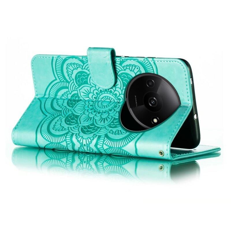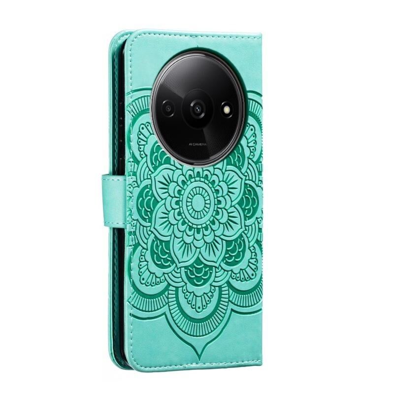 Για Xiaomi Redmi A3 Sun Mandala ανάγλυφο μοτίβο τηλέφωνο δερμάτινη θήκη (πράσινο)