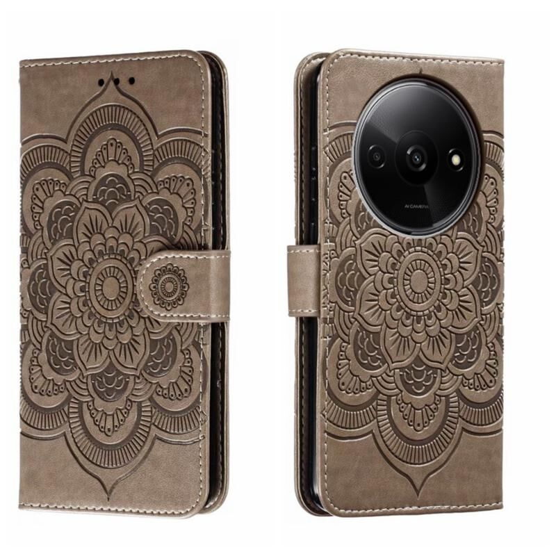 Για Xiaomi Redmi A3 Sun Mandala ανάγλυφο μοτίβο τηλέφωνο δερμάτινη θήκη (Γκρι)