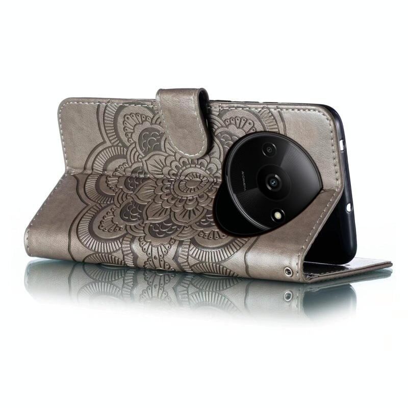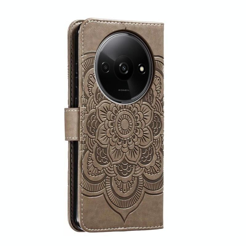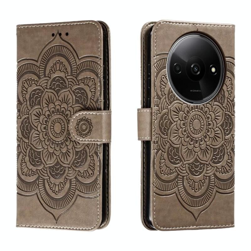 Για Xiaomi Redmi A3 Sun Mandala ανάγλυφο μοτίβο τηλέφωνο δερμάτινη θήκη (Γκρι)