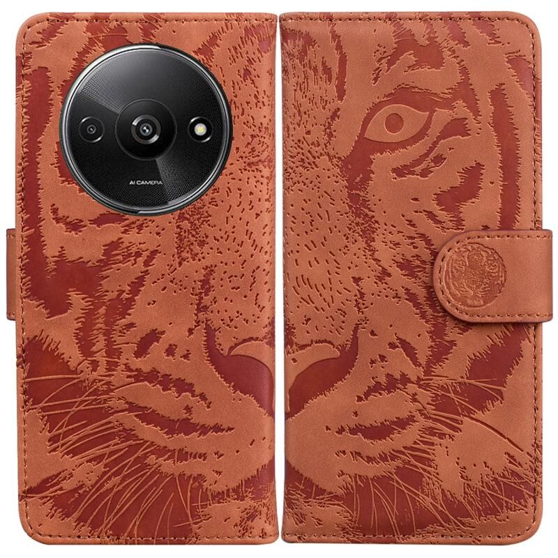 Θήκη δερμάτινη με ανάγλυφο σχέδιο τίγρης για Xiaomi Redmi A3 (Καφέ)