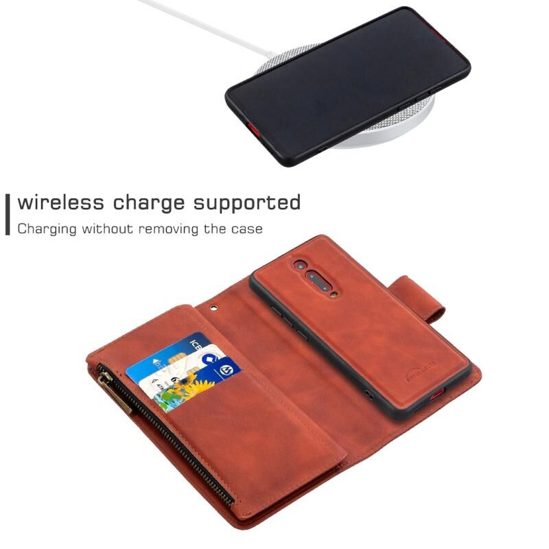 Για Xiaomi Redmi K20 Skin Feel Αποσπώμενο μαγνητικό φερμουάρ Οριζόντια Flip PU δερμάτινη θήκη με υποδοχές πολλαπλών καρτών & κάτοχος & πορτοφόλι & πλαίσιο φωτογραφιών & κορδόνι (καφέ)