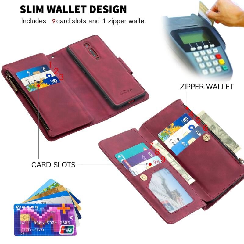 Για Xiaomi Redmi K20 Skin Feel Αποσπώμενο μαγνητικό φερμουάρ Οριζόντια Flip PU δερμάτινη θήκη με υποδοχές πολλαπλών καρτών & κάτοχος & πορτοφόλι & πλαίσιο φωτογραφιών & κορδόνι (κόκκινο)