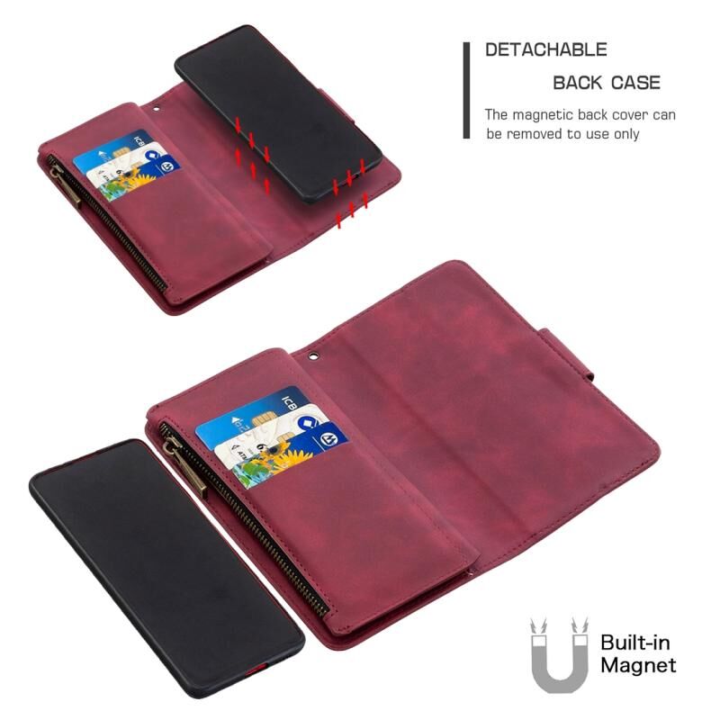 4. Πολυλειτουργικός σχεδιασμός, βολικές υποδοχές για κάρτες, πορτοφόλι με φερμουάρ, θήκη, αποσπώμενο μαγνητικό προστατευτικό κάλυμμα στο πίσω μέρος.