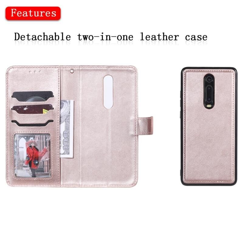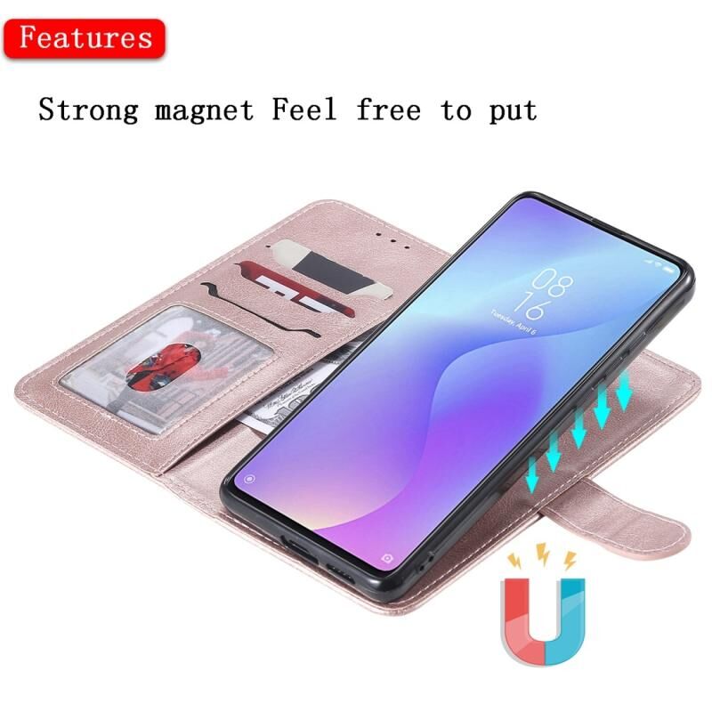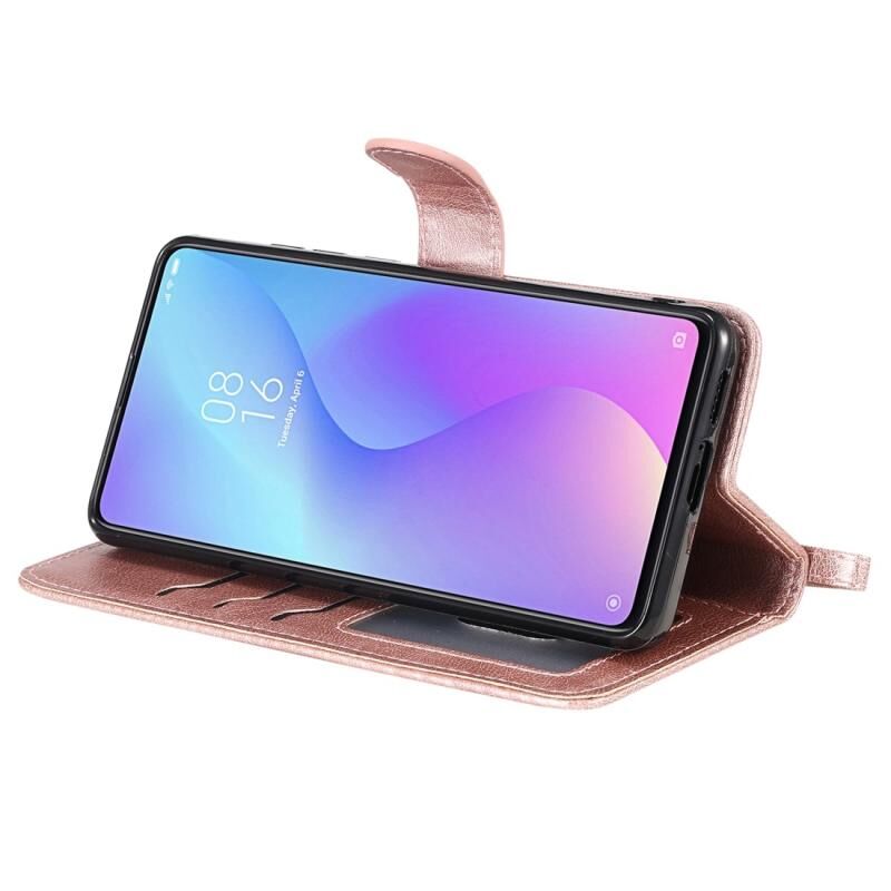 Για Xiaomi Redmi K20 Αμιγές χρώμα οριζόντια Flip προστατευτική θήκη με υποδοχές για κάρτες & υποδοχές & πορτοφόλι & πλαίσιο φωτογραφιών & κορδόνι (Ροζ χρυσός)