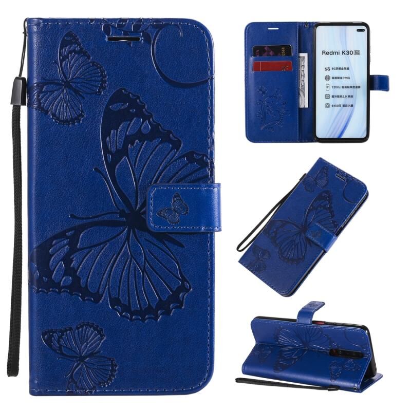 Για Xiaomi Redmi K30 3D Πεταλούδες Embossing Μοτίβο Οριζόντια Θήκη Δέρματος με Στήριξη & Θήκη Κάρτας & Πορτοφόλι & Λουρί (Μπλε)