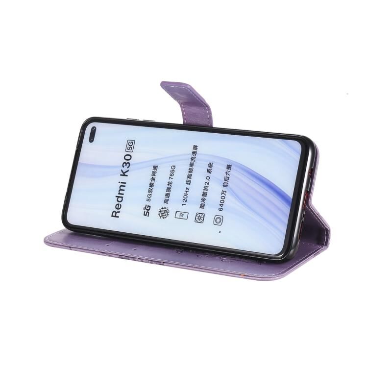 Για Xiaomi Redmi K30 3D Πεταλούδες Embossing Μοτίβο Οριζόντια Θήκη Δέρματος με Στήριξη & Θήκη Κάρτας & Πορτοφόλι & Λουρί (Μωβ)