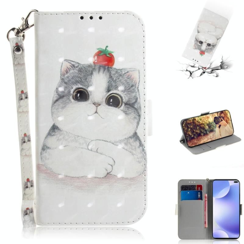 Θήκη δέρματος οριζόντιας αναδίπλωσης με σχέδιο 3D για Xiaomi Redmi K30 με βάση στήριξης & υποδοχή κάρτας & πορτοφόλι & κορδόνι (Χαριτωμένη γάτα)