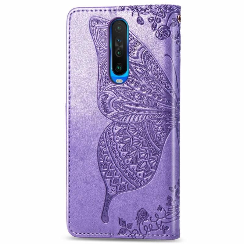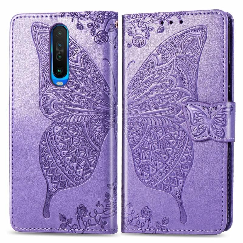 Θήκη δέρματος οριζόντιας αναδίπλωσης για Xiaomi Redmi K30 Butterfly Love Flower Embossed με βάση στήριξης / υποδοχή κάρτας / πορτοφόλι / κορδόνι (ανοιχτό μωβ)