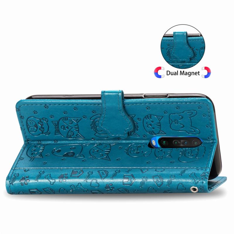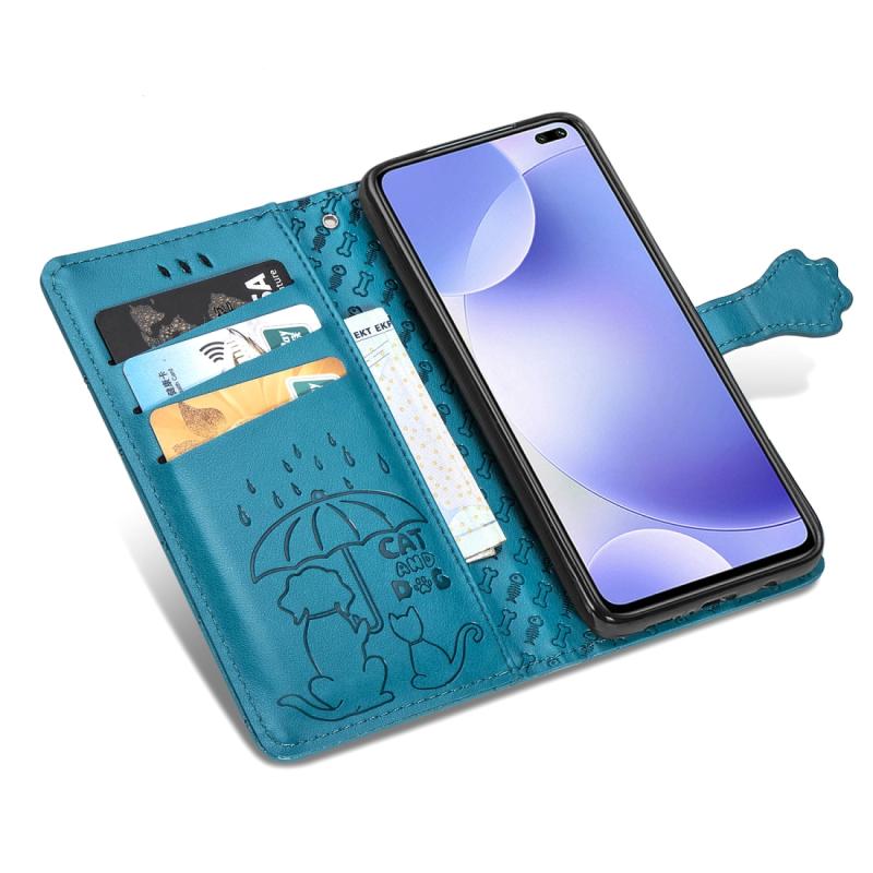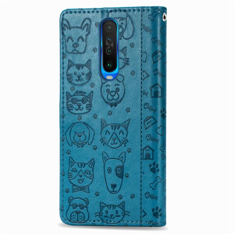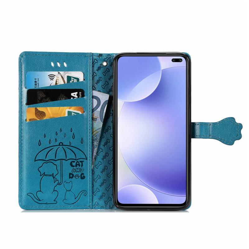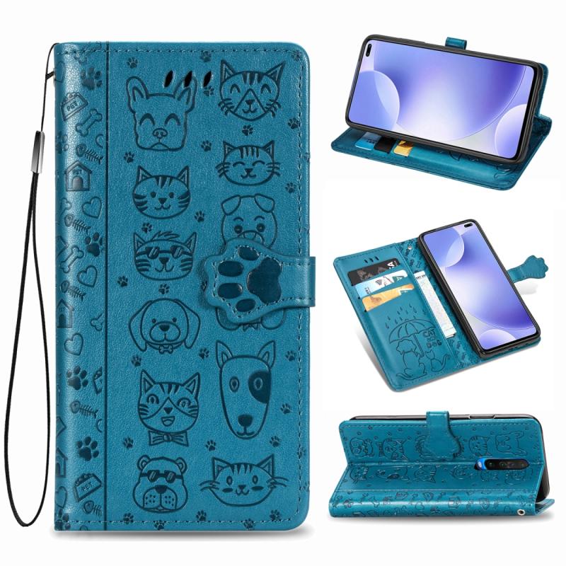 For Xiaomi Redmi K30 Cute Cat and Dog Embossed Horizontal Flip PU Leather Case with Holder / Card Slot / Wallet / Lanyard(Blue)