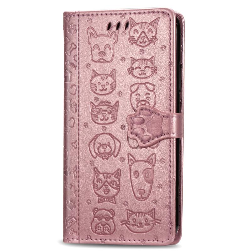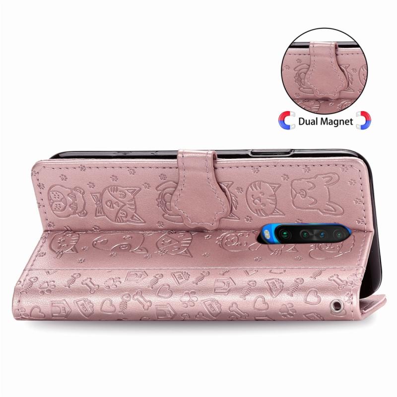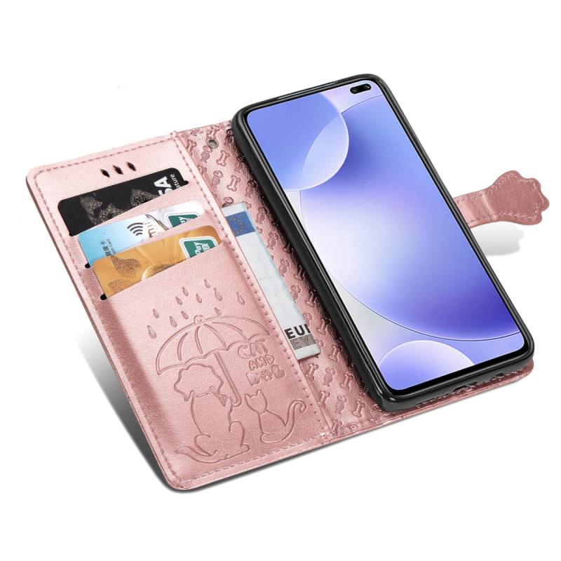 For Xiaomi Redmi K30 Cute Cat and Dog Embossed Horizontal Flip PU Leather Case with Holder / Card Slot / Wallet / Lanyard(Rose Gold)