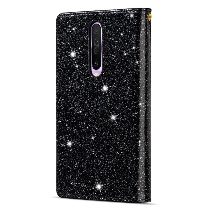 Για Xiaomi Redmi K30 Θήκη Δερμάτινη Οριζόντιας Αναδίπλωσης με Κάρτες, Λαμπερή Χαρακτική Laser "Starry Sky", Φερμουάρ, Στήριξη, Πορτοφόλι & Λουρί (Μαύρο)