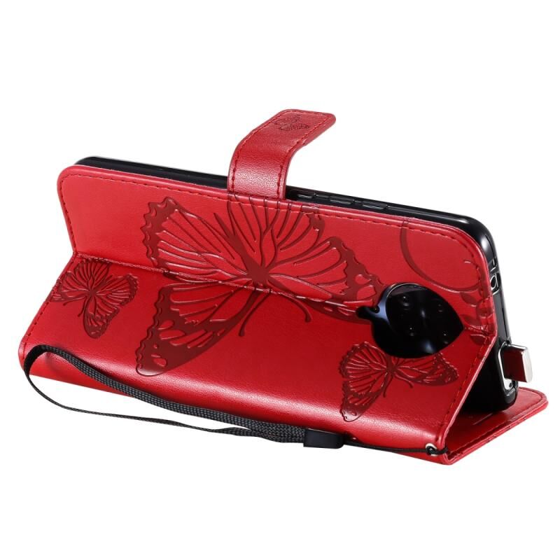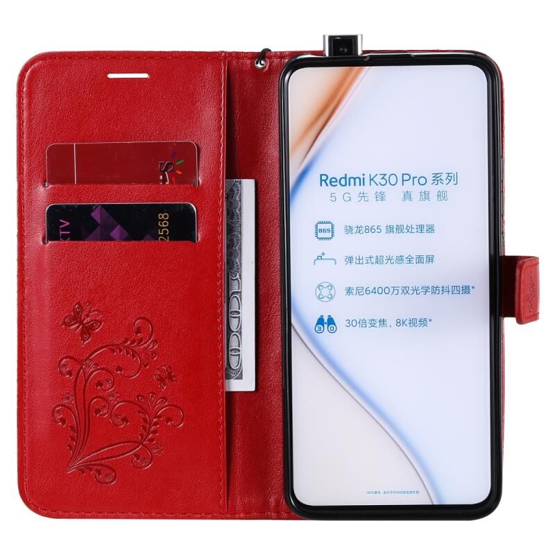 Θήκη δέρματος οριζόντιας αναδίπλωσης για Xiaomi Redmi K30 Pro με ανάγλυφο σχέδιο 3D πεταλούδων, με βάση στήριξης & υποδοχή κάρτας & πορτοφόλι (Κόκκινο)