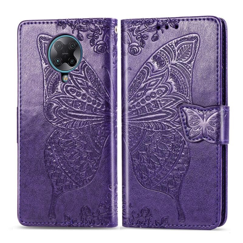 Θήκη δέρματος οριζόντιας αναδίπλωσης για Xiaomi Redmi K30 Pro με ανάγλυφο σχέδιο πεταλούδας, λουλουδιών, βάση στήριξης / υποδοχή κάρτας / πορτοφόλι / κορδόνι (Γκρι)
