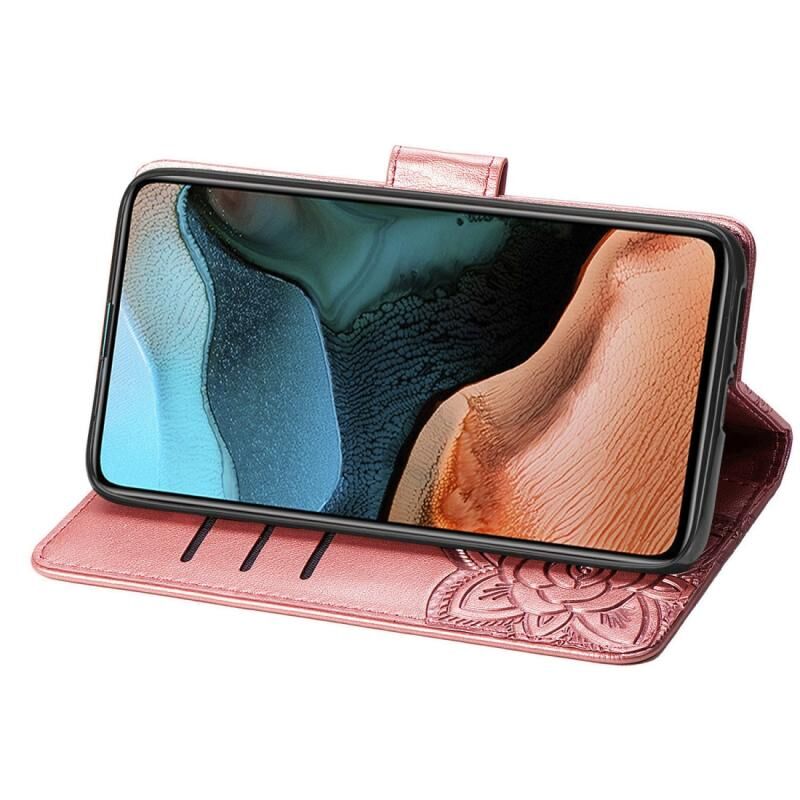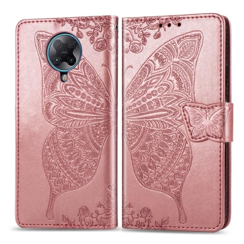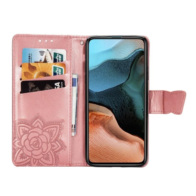 Θήκη δέρματος οριζόντιας αναδίπλωσης για Xiaomi Redmi K30 Pro με ανάγλυφο σχέδιο πεταλούδας, λουλουδιών, βάση στήριξης / υποδοχή κάρτας / πορτοφόλι / κορδόνι (Ανοιχτό Μωβ)