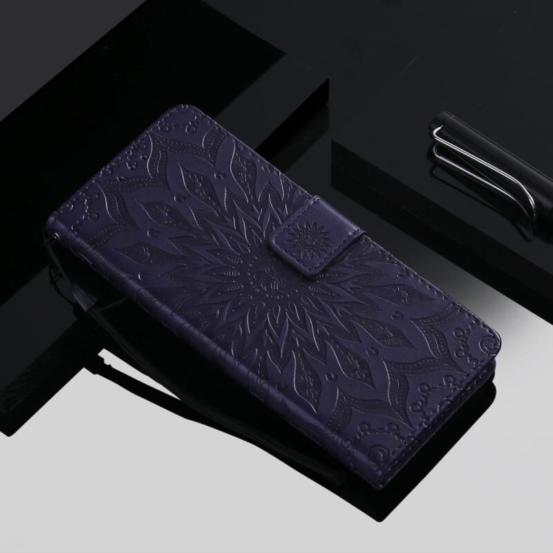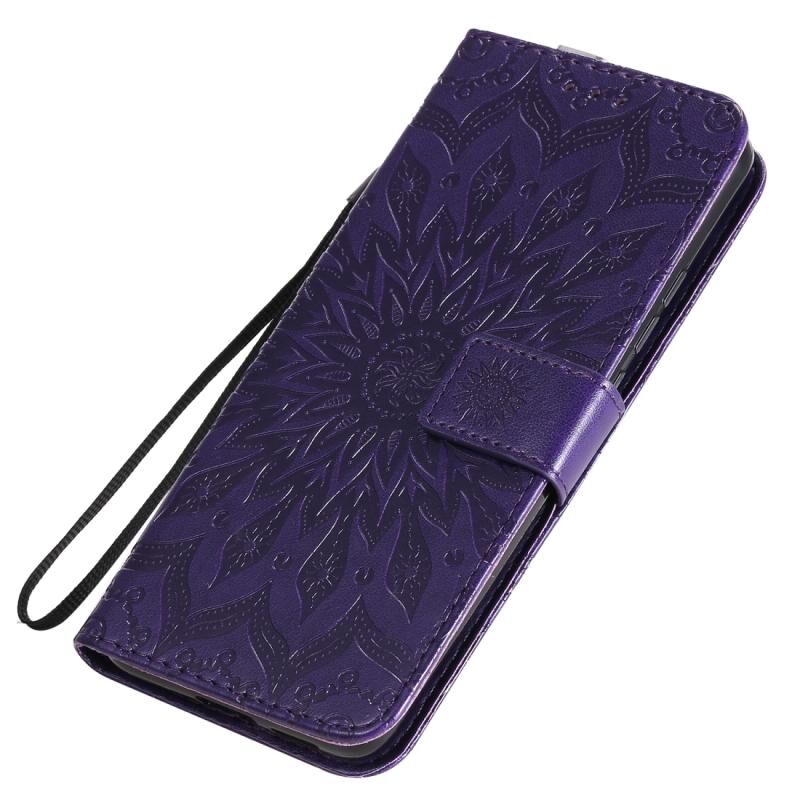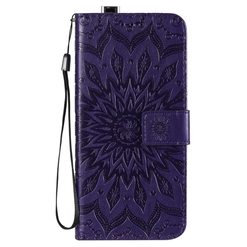 Για Xiaomi Redmi K30 Pro Ανάγλυφο ηλιοτρόπιο μοτίβο οριζόντια Flip PU δέρμα υπόθεση με κάτοχο & υποδοχές καρτών & πορτοφόλι & Lanyard (μωβ)