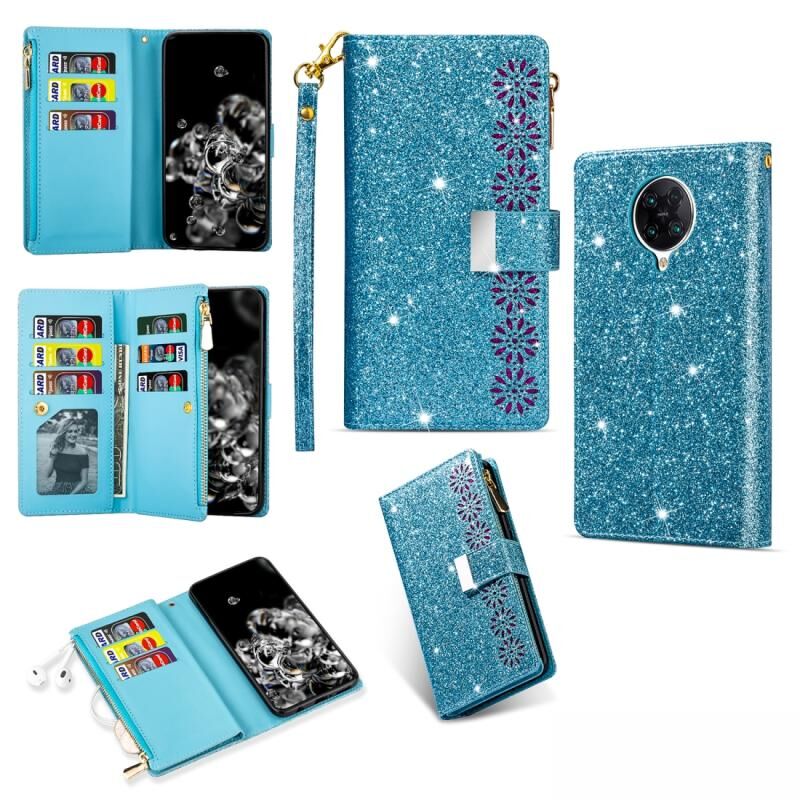 Για Xiaomi Redmi K30 Pro Θήκη Δερμάτινη Οριζόντιας Αναδίπλωσης με Κάρτες, Λαμπερή Χαρακτική Laser Ουρανού, Φερμουάρ, Στήριξη, Πορτοφόλι & Λουρί (Μαύρο)