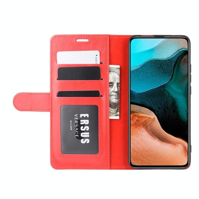 Θήκη προστασίας για Xiaomi Redmi K30 Pro R64 με υφή, οριζόντιο άνοιγμα, βάση στήριξης, θήκες για κάρτες, πορτοφόλι & κορνίζα φωτογραφιών (Κόκκινο)