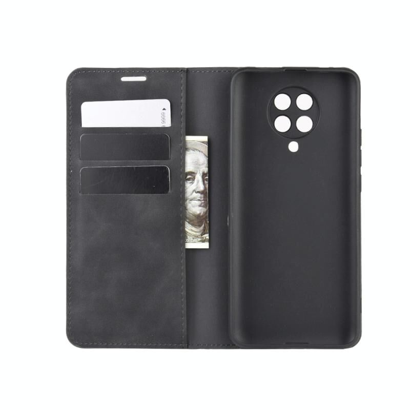 Θήκη δέρματος με μαγνητική απορρόφηση για Xiaomi Redmi K30 Pro, σε ρετρό στυλ, με βάση στήριξης, θήκες για κάρτες και πορτοφόλι (Μαύρο)