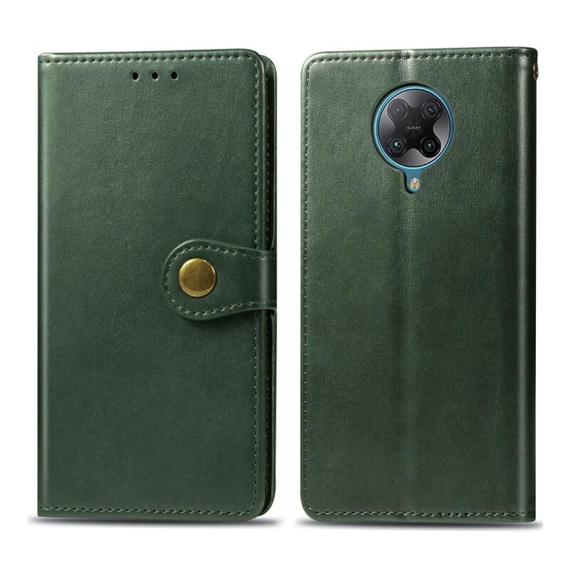 Για Xiaomi Redmi K30 Pro Ρετρό αμιγές χρώμα δερμάτινη θήκη τηλεφώνου πόρπη με κορδόνι & πλαίσιο φωτογραφιών & υποδοχή κάρτας & πορτοφόλι & λειτουργία Stand (πράσινο)
