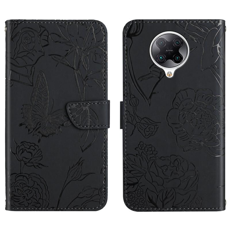 Θήκη τηλεφώνου από δέρμα με ανάγλυφο σχέδιο πεταλούδας και παιώνιας για Xiaomi Blackmi K30 Pro (Κόκκινο)