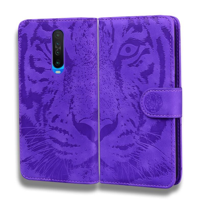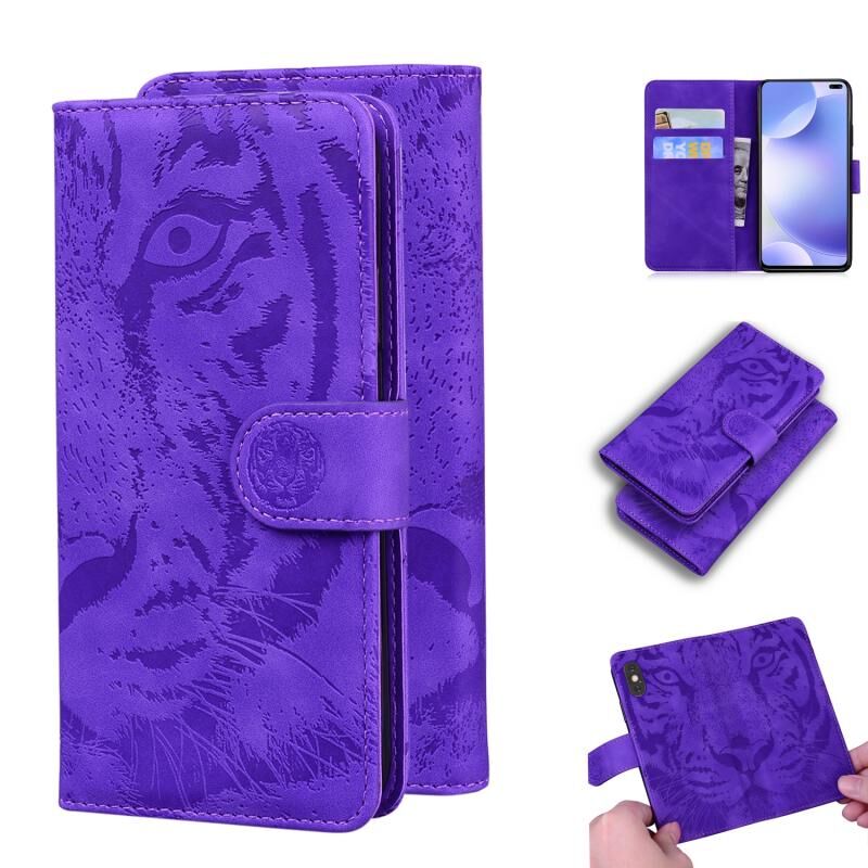 Θήκη δέρματος οριζόντιας αναδίπλωσης με ανάγλυφο σχέδιο τίγρης για Xiaomi Purplemi K30 με βάση στήριξης & υποδοχές καρτών & πορτοφόλι (Κόκκινο)