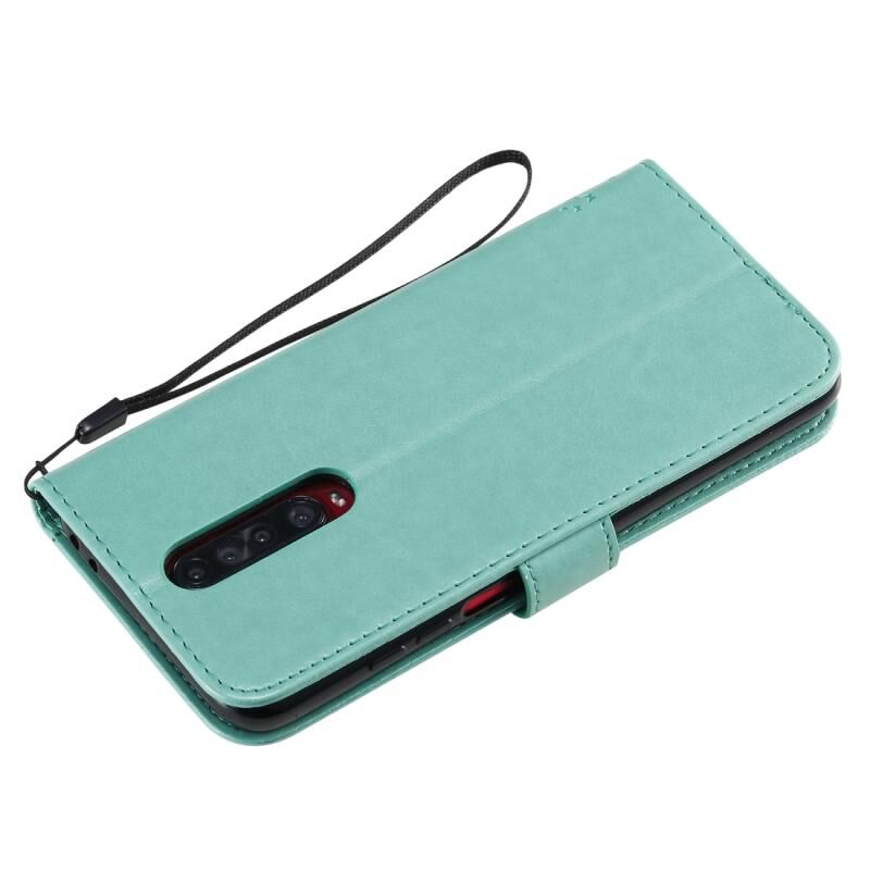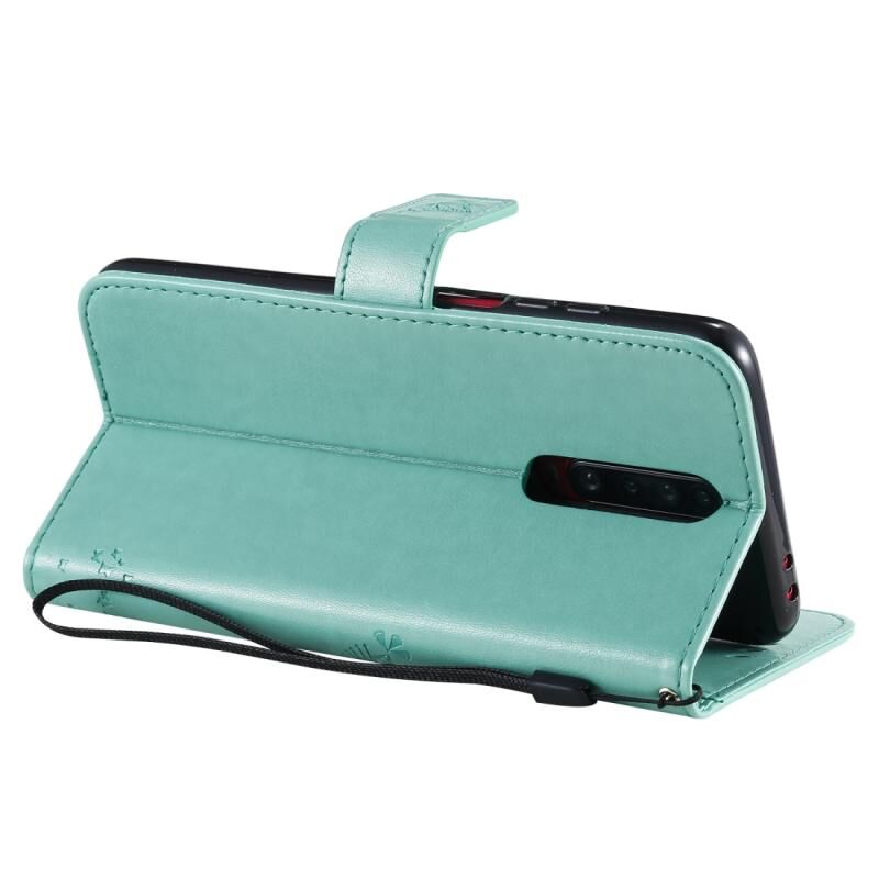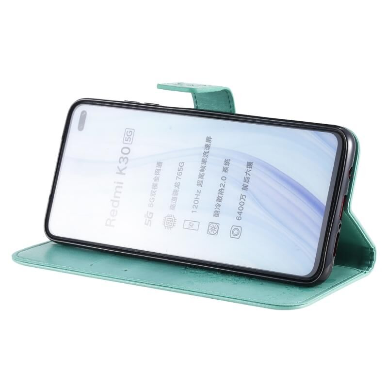 Θήκη για Xiaomi Redmi K30 με σχέδιο Δέντρου & Γάτας, εκτυπωμένη με θερμοτύπωση, οριζόντια αναδιπλούμενη από δερματίνη PU με βάση στήριξης & θήκες για κάρτες & πορτοφόλι & κορδόνι (Πράσινο)