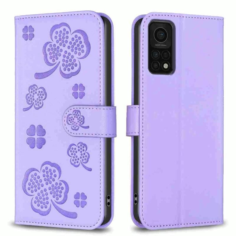 Για Xiaomi Redmi K30S Τέσσερα φύλλα ανάγλυφο δέρμα τηλέφωνο υπόθεση (μωβ)