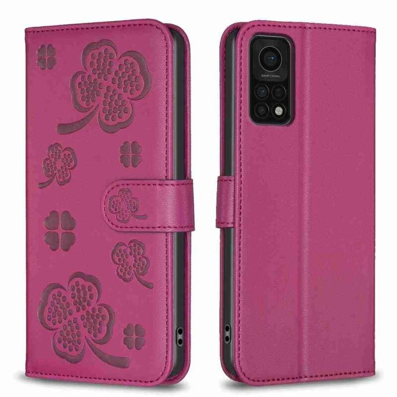 Για Xiaomi Redmi K30S Τέσσερα φύλλα ανάγλυφο δέρμα τηλέφωνο υπόθεση (Rose Red)