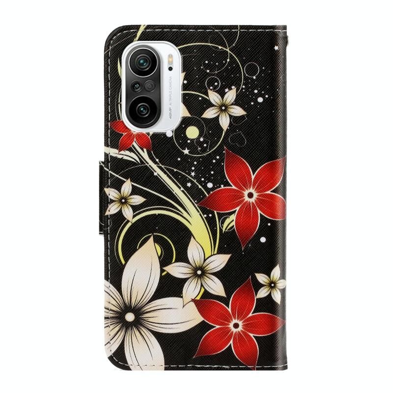 Θήκη τηλεφώνου δερμάτινη, οριζόντιας αναδίπλωσης, με έγχρωμη τρισδιάστατη σχεδίαση για Xiaomi Redmi K40 (Κόκκινη Γάτα με στόμα). (Κόκκινο Λουλούδι)
