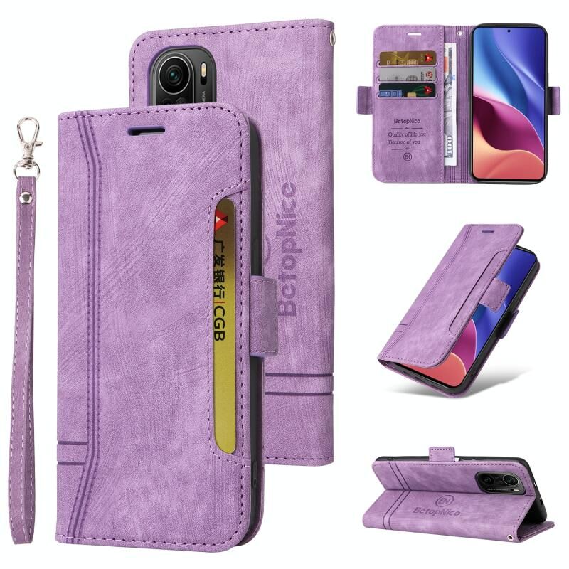 Για Xiaomi Redmi K40 BETOPNICE Διπλής όψης δερμάτινη θήκη τηλεφώνου με αγκράφα (μωβ) (Μωβ)