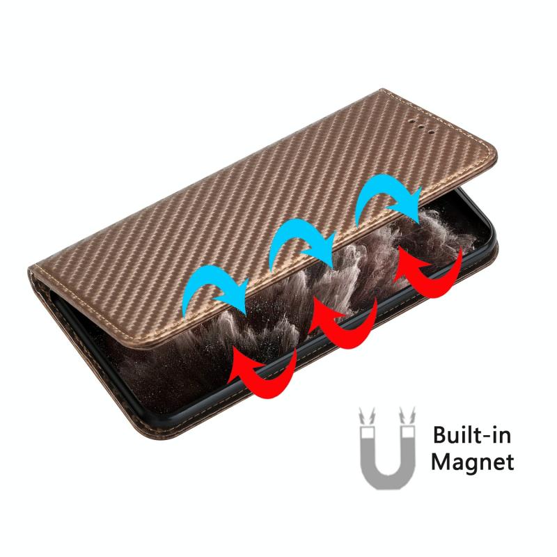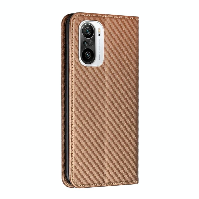 Θήκη δερμάτινη flip με υφή ανθρακονιδημάτων για Xiaomi Redmi K40 (Καφέ)