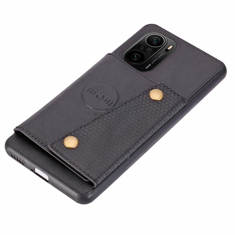 Για Xiaomi Redmi K40 Διπλή πόρπη PU + TPU Shockproof μαγνητική προστατευτική θήκη με υποδοχή κάρτας & κάτοχος (μαύρο)
